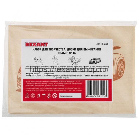 Rexant Доски для выжигания, «Набор №1» (воин/динозавр/собака/машина/без рисунка), 148х210 мм (А5), 12-0936