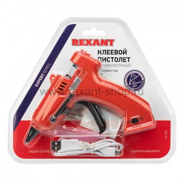 Пистолет клеевой REXANT, 10 Вт, ?7 мм, «ЭКСПЕРТ», аккумуляторный, блистер
