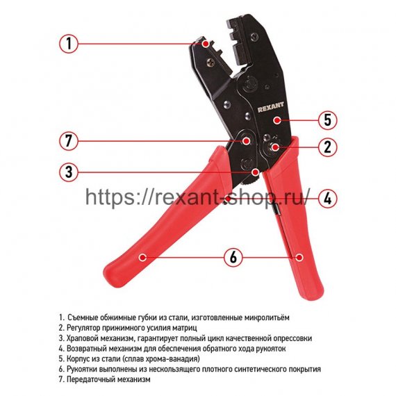- Храповой механизм гарантирует полный цикл качественной опрессовки