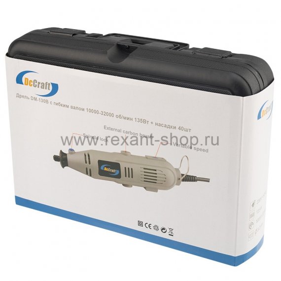 Rexant Дрель (гравер) с гибким валом 10000-32000 об/мин 135Вт + 40 аксессуаров, 12-4446