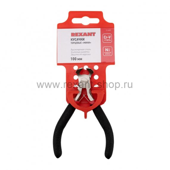 Кусачки торцевые REXANT Мини 100 мм никелированные, авторазжим, обливные рукоятки