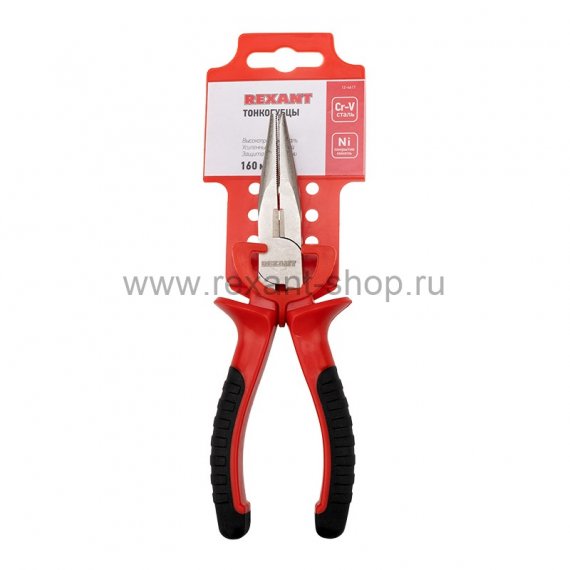 Rexant Тонкогубцы 160 мм никелированные, двухкомпонентные рукоятки, 12-4617