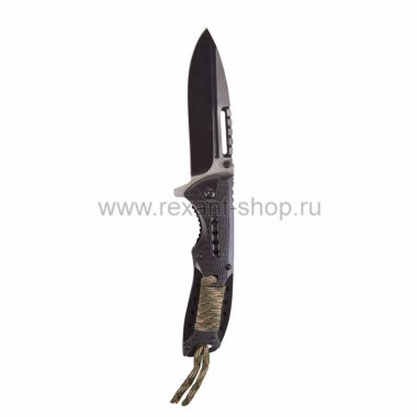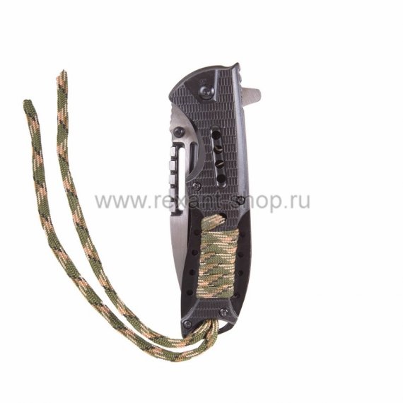 Длина клинка - 100мм, длина(закрытого ножа ) - 120мм, длина(открытого ножа)-220мм, вес -123г, материал - нержавеющая сталь 420,цвет - черный, двухкомпонентная рукоятка со шнуром, замок(стопор клинка) -liner lock, клипса. Упаковка-блистер