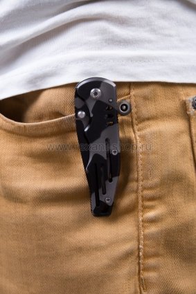 Нож оснащен клипсой для крепления к поясу для комфортной переноски. Длина клинка - 70мм; длина (закрытого ножа ) - 90мм; длина (открытого ножа)-160мм; вес -72г; материал - нержавеющая сталь 420; цвет - камуфляж; металлическая рукоятка; замок(стопор клинка) -liner lock; клипса; упаковка-блистер.