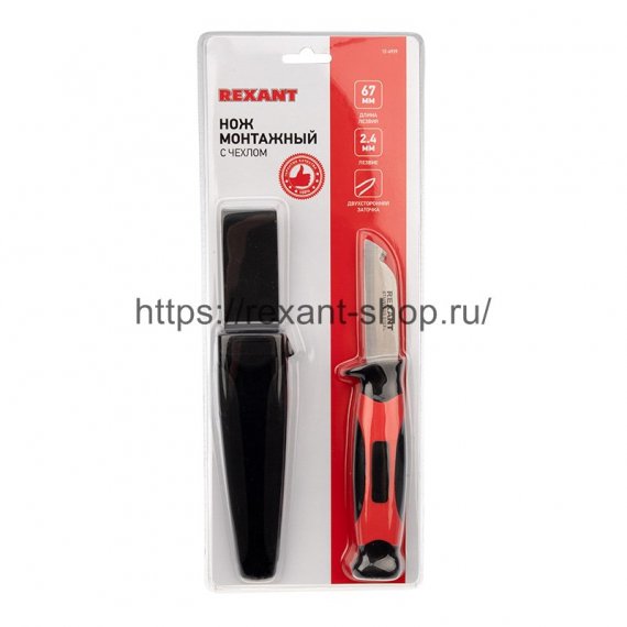 Rexant Нож монтажника с чехлом лезвие 67 мм, 12-4939