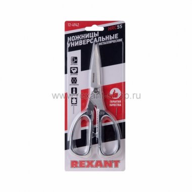 Ножницы универсальные металлические REXANT идеально подходят для резки кожи, резины, картона, пластика, гофры, медных проводов, кабеля.