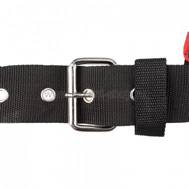 Прочный двухрядный пояс с мощной металлической пряжкой.