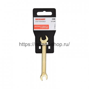 Ключ рожковый REXANT 8х9 мм, желтый цинк