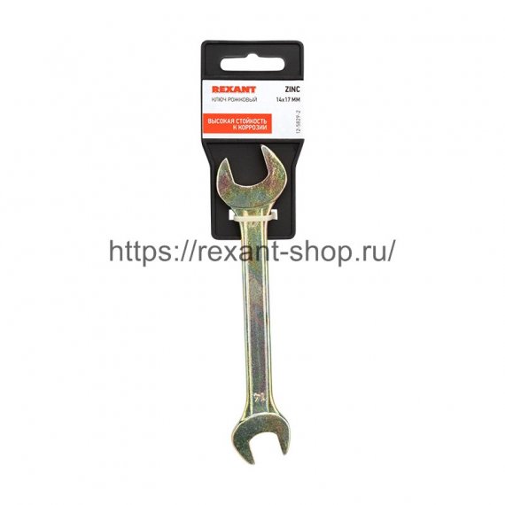 Ключ рожковый REXANT 14х17 мм, желтый цинк