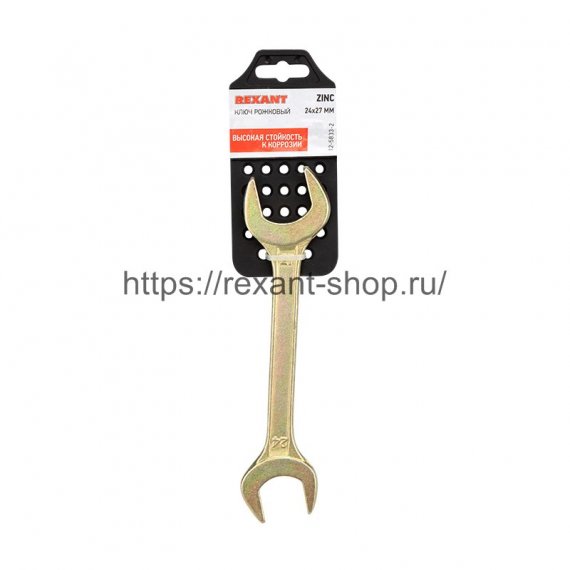 Ключ рожковый REXANT 24х27 мм, желтый цинк