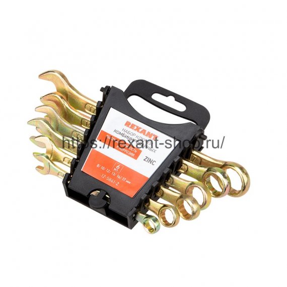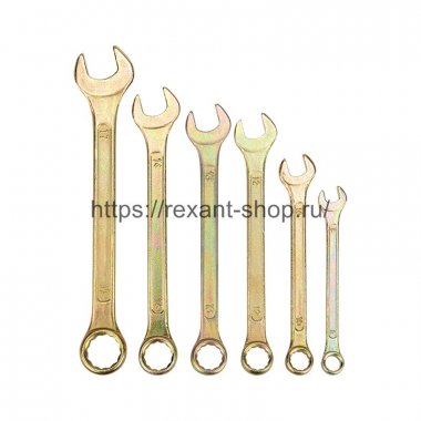 Набор ключей комбинированных REXANT (8, 10, 12, 13, 14, 17 мм), 6 шт., желтый цинк