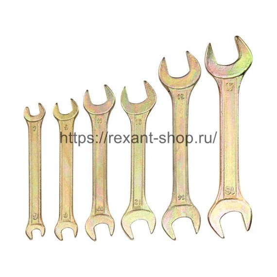 Набор ключей рожковых REXANT (6х7-16х17 мм), 6 шт., желтый цинк