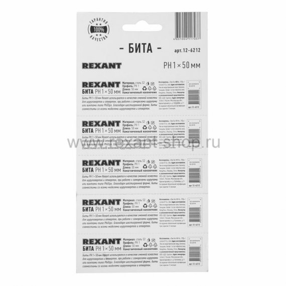 Купить по низким ценам Rexant 12-6312 Описание Rexant 12-6312 Биты PZ1 x 50мм Rexant используются в качестве сменной оснастки для шуруповертов и отверток, при работе с саморезами шурупами или винтами типа Pozidriv. Биты имеют шестигранную форму и благодаря этому подойдут для всех видов шуруповертов и отверток.