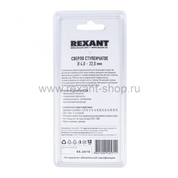 Сверло по жести ступенчатое 4,0 - 32,0 мм REXANT