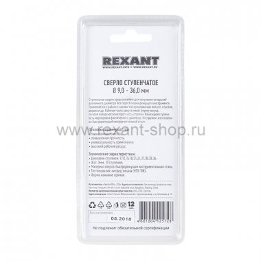 Сверло по жести ступенчатое 9,0 - 36,0 мм REXANT
