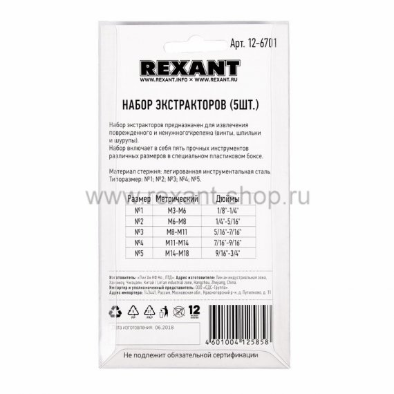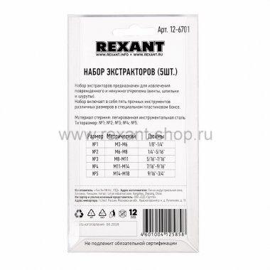 Купить по низким ценам Rexant 12-6701 Описание Rexant 12-6701 Набор экстракторов для шурупов предназначен для быстрого удаления ненужного крепежа.