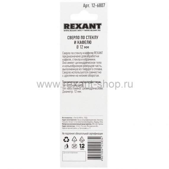 Rexant Сверло по стеклу и кафелю 12мм 12-6807 Rexant 12-6807
