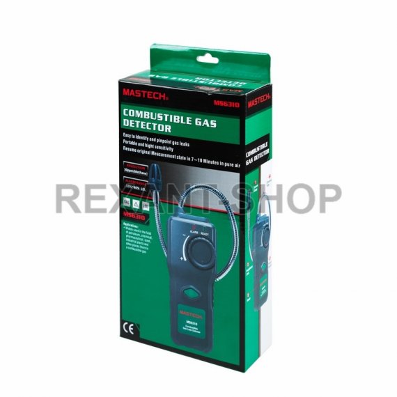 Цифровой детектор утечки газа Mastech MS6310 65299 - компактное устройство, предназначенное для обнаружения природного газа, этана, алкоголя, угарного газа, бензина и многого другого. Время непрерывной работы составляет примерно 9 часов. Прибор питается от 4 батареек 1.5 В типа ААА.