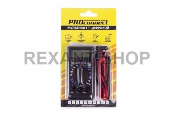 Мульти́метр —электроизмерительный устройство который подключает в себя некоторое количество функций и комплект измеряемых характеристик . Цифровой миниатюрный мультиметр Proconnect DT-182 дает собой субкомпактный 3,5-разрядный устройство , предназначенный для измерения неизменного и переменного напряжения, неизменного тока, сопротивления, испытания диодов, транзисторов, прозвонки соединений, а например же испытания батареек. Устройство приготовлен из качественных материалов , калибровка и испытание устройств произведено под контролем фирмы REXANT INTERNATIONAL.