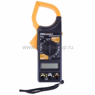 Токоизмерительные клещи (или Клещи Дитце) – это прибор, который позволяет измерять переменный ток без разрыва самой цепи, в который проводиться измерение. Прибор получает результат измерений исходя из закона электромагнитной индукции. Если в проводнике течет ток, то вокруг проводника создается магнитное поле и если этот проводник охватить другим проводником, то в нем возникает ЭДС (ЭлектроДвижущая Сила). Полученная ЭДС при определенных условиях пропорциональная измеряемому току. И таким образом измерив, напряжение на данном проводнике, станет возможным и определение величины измеряемого тока. Токоизмерительные клещи серии P266 Proconnect являются многофункциональными приборами, с помощью которых можно измерить множество параметров. Кроме основной функции, измерения переменного тока, с помощью P266 можно измерить постоянное и переменное напряжение, сопротивление. Токовые клещи P266 имеют функцию удержания результата измерений Data hold, для тех случаев, когда измерения проводятся в труднодоступных местах и не всегда есть возможность взглянуть на экран. Прибор изготовлен из высококачественных материалов и имеют эргономичный дизайн. Инженеры старались максимально упростить прибор, и по этому, с ним легко работать даже одной рукой. Кроме того у прибора усиленный переключатель, благодаря которому исключается возможность случайного нажатия. Калибровка и тестирование приборов произведено под контролем компании REXANT INTERNATIONAL.