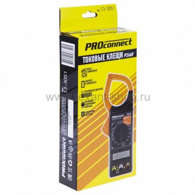 Токоизмерительные клещи (или Клещи Дитце) – это прибор, который позволяет измерять переменный ток без разрыва самой цепи, в который проводиться измерение. Прибор получает результат измерений исходя из закона электромагнитной индукции. Если в проводнике течет ток, то вокруг проводника создается магнитное поле и если этот проводник охватить другим проводником, то в нем возникает ЭДС (ЭлектроДвижущая Сила). Полученная ЭДС при определенных условиях пропорциональная измеряемому току. И таким образом измерив, напряжение на данном проводнике, станет возможным и определение величины измеряемого тока. Токоизмерительные клещи серии P266F Proconnect являются многофункциональными приборами, с помощью которых можно измерить множество параметров. Кроме основной функции, измерения переменного тока, с помощью P266F можно измерить постоянное и переменное напряжение, сопротивление и частоту. Кроме того у данного прибора есть функция прозвонки целостности цепи и проверки диодов. Токовые клещи P266F имеют функцию удержания результата измерений Data hold, для тех случаев, когда измерения проводятся в труднодоступных местах и не всегда есть возможность взглянуть на экран. Прибор изготовлен из высококачественных материалов и имеют эргономичный дизайн. Инженеры старались максимально упростить прибор, и по этому, с ним легко работать даже одной рукой. Кроме того у прибора усиленный переключатель, благодаря которому исключается возможность случайного нажатия. Калибровка и тестирование приборов произведено под контролем компании REXANT INTERNATIONAL.