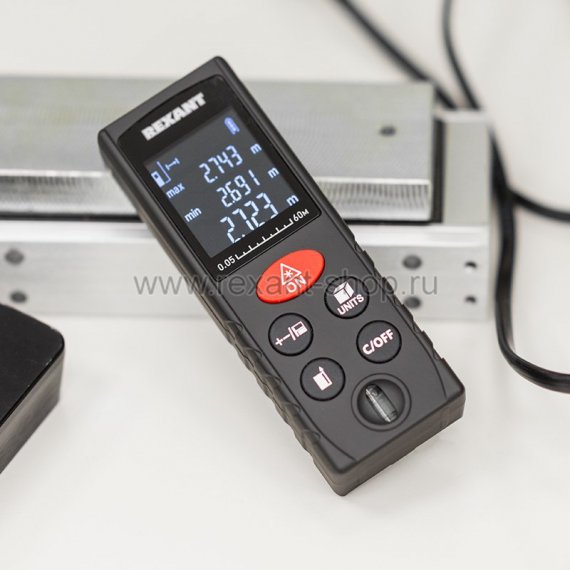 Лазерный дальномер-рулетка — незаменимый инструмент для строителей, риэлторов, установщиков мебели и т. п. Позволяет быстро и точно определить расстояние, площадь, объем, запоминает значения, имеет функцию неперывного измерения "MAX/MIN".