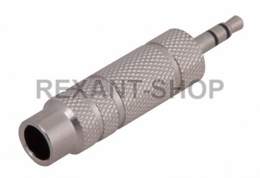 ПЕРЕХОДНИК штекер 3.5мм стерео - гнездо 6.3мм стерео (металл) REXANT предназначен для передачи аналогового стерео аудиосигнала идущего от кабеля на аудиооборудование с переходом на другой тип разъема. С его помощью возможно подключать элементы аудиосистемы с разными разъемами. С одной стороны адаптера располагается штекер разъема 3.5мм Stereo, а с другой гнездо разъема 6.3мм Stereo. Такой переходник используется для совместной эксплуатации домашней и профессиональной аудиоаппаратуры (микрофоны, электронные музыкальные инструменты, плееры, усилители звука, телевизоры, акустические системы, видеоприставки, мобильные телефоны и т.п.), имеющей разъемы разного типа. Корпус адаптера изготовлен из никелированного металла с рифлением для предотвращения соскальзывания при монтаже. Простая конструкция и высокотехнологичное исполнение переходника гарантирует передачу аудиосигнала с минимальным уровнем потерь.