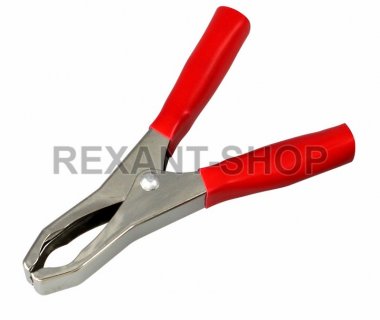 Зажим "крокодил" 50А 98мм REXANT представляет собой электромеханическое устройство, предназначенное для оперативного соединения или разъединения контакта проводов при выполнении измерительных работ или монтажа электрических и слаботочных сетей. Зажим получил свое название за схожесть с челюстями крокодила. Состоит он из двух фигурных деталей с «крокодильими» зубцами, скрепленных серединами специальным штифтом и способных поворачиваться на некоторый угол вокруг оси соединения. К одной из деталей монтируется контактный провод. Сжатие «челюстей» обеспечивается пружиной, вставленной с другой стороны штифта. Контактная часть изделия изготавливается из стали с никелированным покрытием. В целях безопасной эксплуатации зажима, ручки имеют изоляцию, изготовленную из ПВХ, что предохранит от поражения специалиста электрическим током. Чаще всего зажимы применяются парами черного и красного цвета (50/50). Основные характеристики: