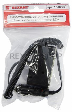 Разветвитель автоприкуривателя 2гн + 2хUSB 5V 1A витой шнур 1.5М REXANT предназначен для подключения нескольких электронных устройств к бортовой сети через одну авторозетку, а также портативных устройств потребляющих 5В через 2 гнезда USB. Таким разветвителем возможно подключать 2 любых электронных устройства (видеорегистратор, зарядное устройство, радар-детектор, навигатор, автохолодильник, телевизор, автокомпрессор, автопылесос и т.д.), потребляющие постоянный ток (DC) напряжением 12В. Кроме того, возможно подключать различные автомобильные аксессуары (мобильный телефон, MP3-плеер, автомобильный комплект «hands free» и т.д.). Корпус штекера, как и модуль гнезд, изготовлен из ударопрочного пластика. Шнур спиралевидной витой формы обладает высокой износостойкостью, компактным размером и является более удобным в использовании, чем прямой. Двойник гнезда прикуривателя позволит исключить вмешательство в штатную электропроводку, тем самым, не нарушая гарантию на новый автомобиль. Основные характеристики: