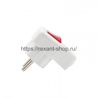 Вилка Евро угловая с з/к 16А белая с кнопкой REXANT