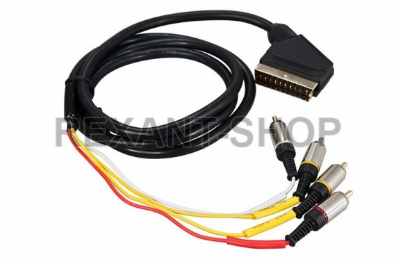 Шнур SCART Plug - 4RCA Plug 1.5М (GOLD) REXANT предназначен для качественной передачи видео и аудиосигнала между устройствами (телевизор, видеомагнитофон, DVD-проигрыватель), имеющими разъемы типа SCART и RCA. Соединительный шнур с одной стороны имеет штекер SCART-разъема (европейский стандарт для подключения мультимедийного оборудования) и с другой три штекера RCA-разъема. В целях улучшения характеристик и снижения потерь передаваемого сигнала контакты разъемов имеют золотое напыление. Корпус разъемов выполнен из качественного, легкого и прочного пластика. Длина шнура составляет 1.5 метра. Профессиональный уровень надежности достигается благодаря применению качественных материалов и высокотехнологичного уровня исполнения шнура.