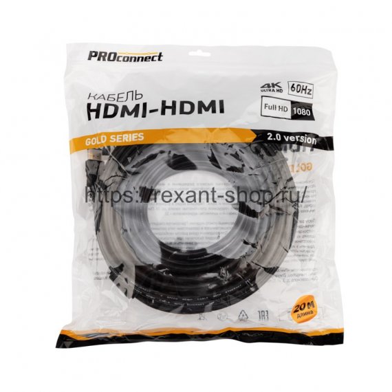 Кабель PROconnect HDMI - HDMI 2.0 предназначен для передачи цифровых видеоданных высокого разрешения и многоканальных цифровых аудиосигналов с защитой от копирования.