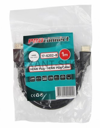 Шнур HDMI - HDMI gold 1М без фильтров (PE bag) PROCONNECT