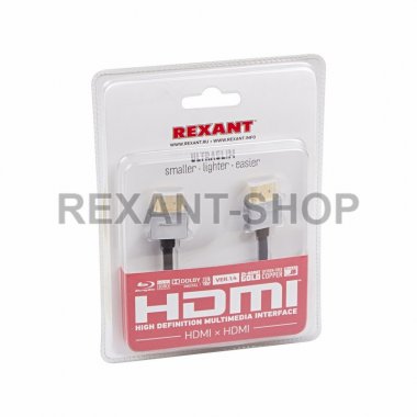 Шнур HDMI - HDMI gold 1.5М Ultra Slim (блистер) REXANT предназначен для передачи цифрового видеоизображения высокого разрешения и многоканального цифрового аудиосигнала с защитой от копирования. Используется для совместной работы устройств нового поколения, имеющих разъемы HDMI: проекторы, телевизионные аппараты, компьютеры и ноутбуки, мультимедийные проигрыватели и другие видеоустройства. С обеих сторон располагаются металлические штекеры разъема HDMI (High-Definition Multimedia Interface - интерфейс для мультимедиа высокой чёткости). Отличительной особенностью данного шнура является очень тонкий провод, что позволит ему остаться незамеченным. Для производства жил используется только первичная, технически чистая медь (99%). На контакты разъемов нанесен слой золота по технологии вакуумного напыления, обеспечивающий повышение качественных показателей изображения и звука, а также отсутствие помех при передаче сигналов. Длина шнура составляет 1.5 метра. Для бережной транспортировки и защиты от загрязнений предусмотрена блистерная упаковка.