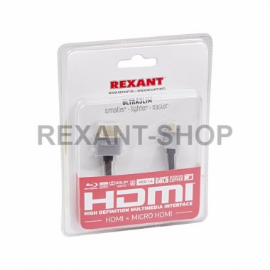 Шнур HDMI - micro HDMI gold 3М Ultra Slim (блистер) REXANT предназначен для передачи цифрового видеоизображения высокого разрешения и многоканального цифрового аудиосигнала с защитой от копирования. Используется для совместной работы устройств нового поколения, имеющих разъемы HDMI и micro HDMI: проекторы, телевизионные аппараты, компьютеры и ноутбуки, мобильные телефоны и планшеты, мультимедийные проигрыватели и другие видеоустройства. С одной стороны располагается металлический штекер разъема HDMI, а с другой металлический штекер разъема micro HDMI. Отличительной особенностью данного шнура является очень тонкий провод, что позволит ему остаться незамеченным. Для производства жил используется только первичная, технически чистая медь (99%). На контакты разъемов нанесен слой золота по технологии вакуумного напыления, обеспечивающий повышение качественных показателей изображения и звука, а также отсутствие помех при передаче сигналов. Длина шнура составляет 3 метра. Для бережной транспортировки и защиты от загрязнений предусмотрена блистерная упаковка.