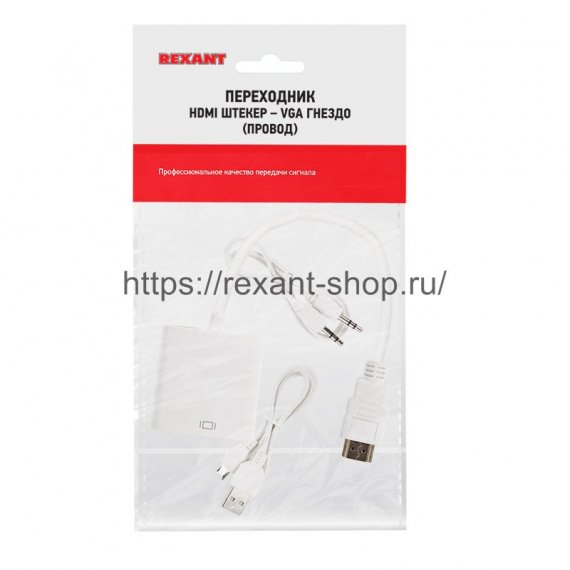 Rexant ПЕРЕХОДНИК штекер HDMI - гнездо VGA (провод) + 3. 5 mm Аудио с питанием, 17-6934