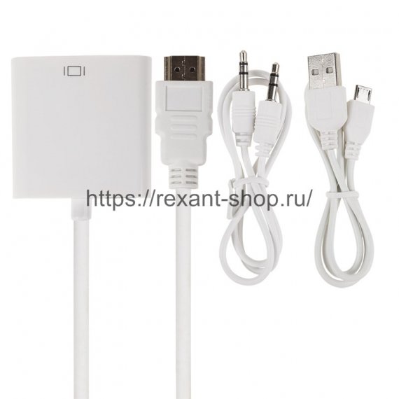 ПЕРЕХОДНИК шт. HDMI - гн. VGA (провод) + 3. 5 mm Аудио с питанием REXANT