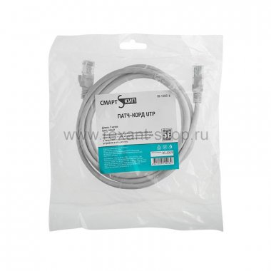 Пaтч-корд UTP кат. 5e, длина 2 метра, неэкранированный, серый (CCA) СМАРТКИП