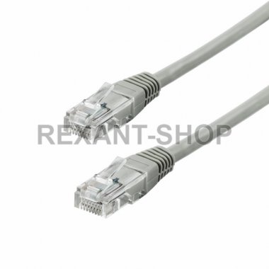 Патч-корд UTP 5e кат. литой 5М СЕРЫЙ REXANT предназначен для подключения активного и пассивного сетевого оборудования в составе структурированной кабельной системы, и представляет собой шнур из 4-х пар изолированных проводников, скрученных между собой, находящиеся в общей изоляции с разъемами типа 8P8C. Патч-корд (от англ. patching cord — соединительный шнур) необходим для соединения телекоммуникационного оборудования: компьютеры, офисные АТС, сетевые коммутаторы, концентраторы, коммутационные панели, маршрутизаторы, патч-панели в телекоммуникационных стойках, сетевые карты, а также другого оборудования, имеющего разъемы RJ-45. С обеих сторон шнура располагаются штекеры разъема RJ-45 (8P8C). Полоса пропускаемых частот от 100-125 МГц, что соответствует категории 5е. Главными преимуществами такого патч-корда являются: