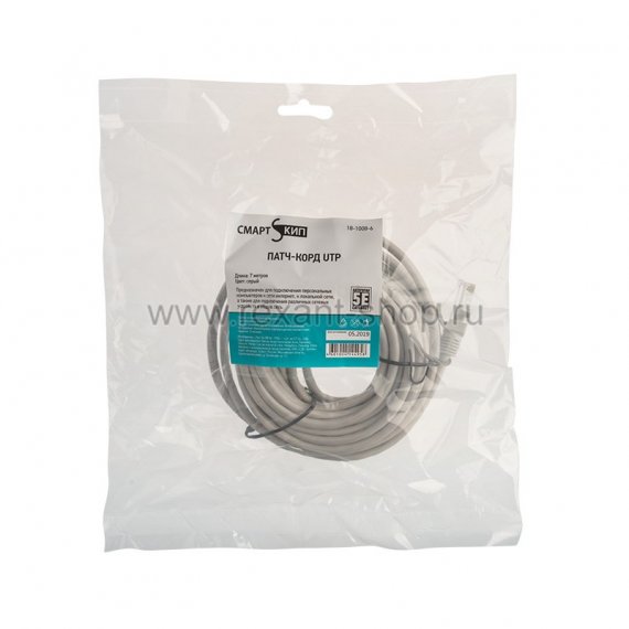 Пaтч-корд UTP кат. 5e, длина 7 метров, неэкранированный, серый (CCA) СМАРТКИП