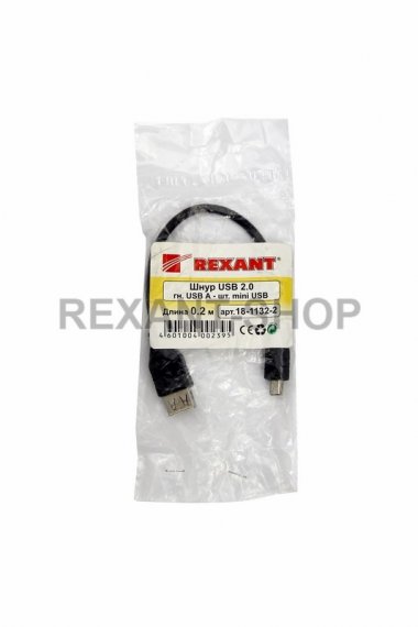 Шнур mini USB (male) - USB-A (female) 0.2M черный REXANT