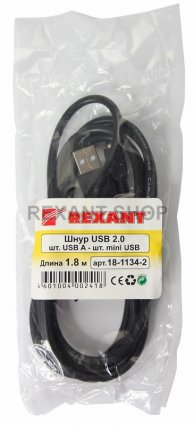 Шнур mini USB (male) - USB-A (male) 1.8M черный REXANT