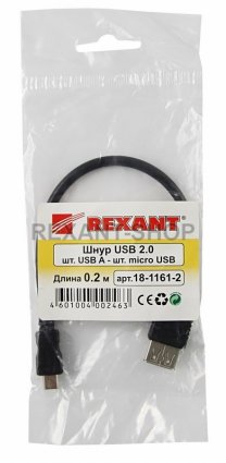Шнур micro USB (male) - USB-A (female) 0.2M черный REXANT