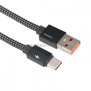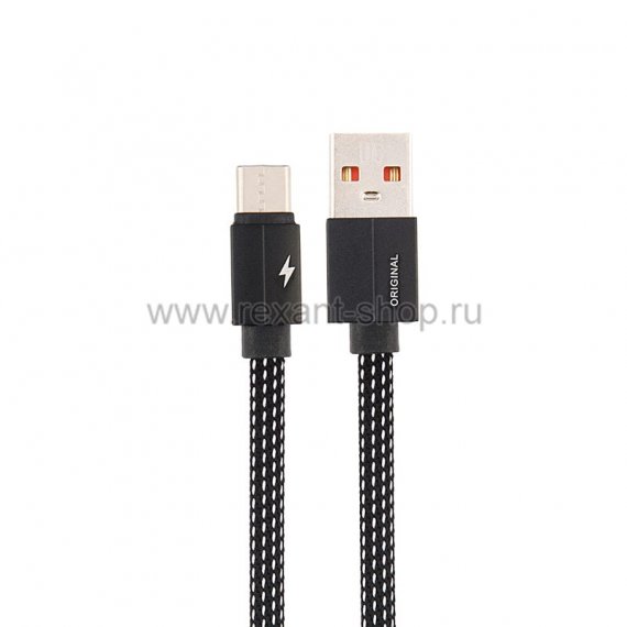 Шнур USB 3.1 Type-C (male) - USB 2.0 (male) FAST CHARGE в тканевой оплетке плоский 1M черный
