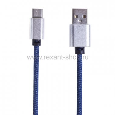 Шнур USB 3.1 type C (male)-USB 2.0 (male) в джинсовой оплетке 1 м REXANT