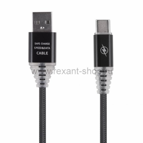 Данный кабель отличает ультрасовременный материал оплетки - синтетический полимер soft touch (бархатистый на ощупь) с печатным рисунком - змеиная кожа и подсвечивающиеся разъёмы.