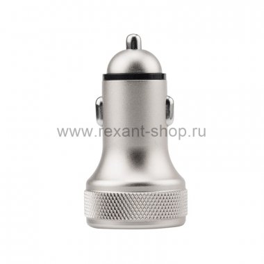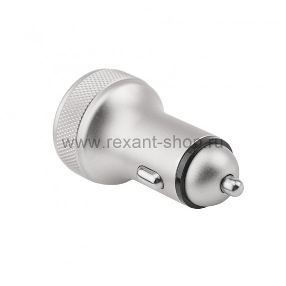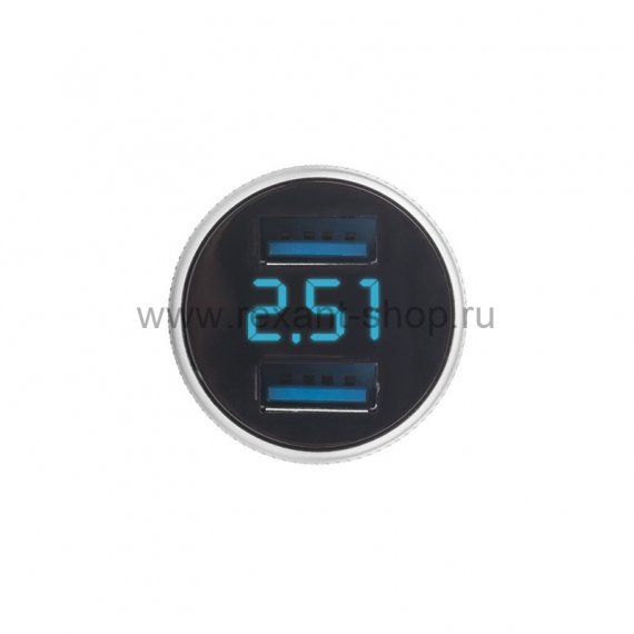 Автозарядка в прикуриватель 2хUSB с дисплеем (АЗУ) (1000+2100 mA) серебристая REXANT