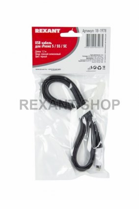 Купить по низким ценам Rexant 18-1978 Описание Rexant 18-1978 USB кабель для iPhone 5/5S/5C/6/6+, цвет кабеля черный, силиконовый, плоский. Предназначен для зарядки и синхронизации с ПК или ноутбуком устройств компании Apple, оборудованных разъемом 8 pin. С одной стороны кабель подключается к гаджету, а с другой к компьютеру или зарядному устройству. Обеспечивает быструю зарядку и передачу данных. Уникальная бескаркасная форма USB разьема.
