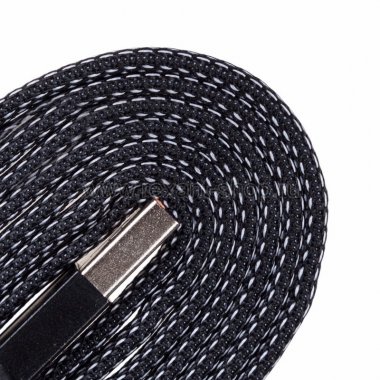 USB кабель для iPhone 5/6/7/8/X моделей, плоский шнур текстиль черный