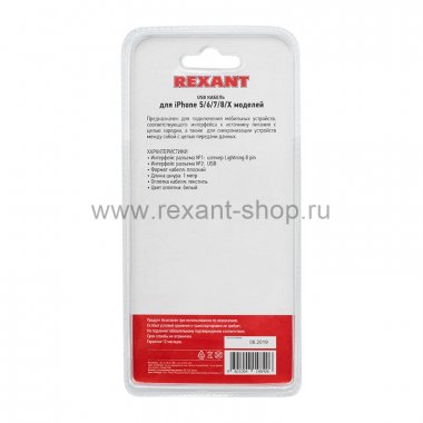 Rexant USB кабель для iPhone 5/6/7/8/X моделей, 1 метр , 18-1979